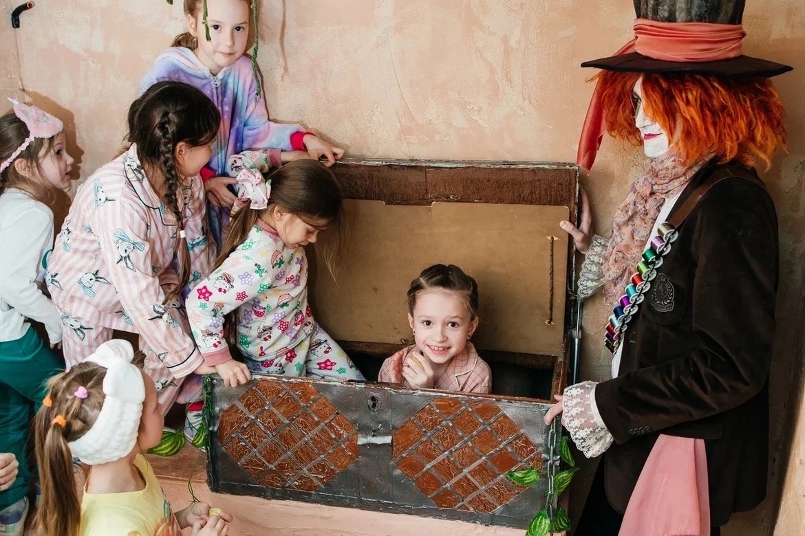 КВЕСТ "В поисках Шляпника", Дети встретят веселого Шляпника, разгадают загадки Чеширского кота и побывают в волшебном лесу, где растут огромные цветы. СЕРЕБРЯНОЕ ШОУ. Дискотека с целой горой серебристого дождя.