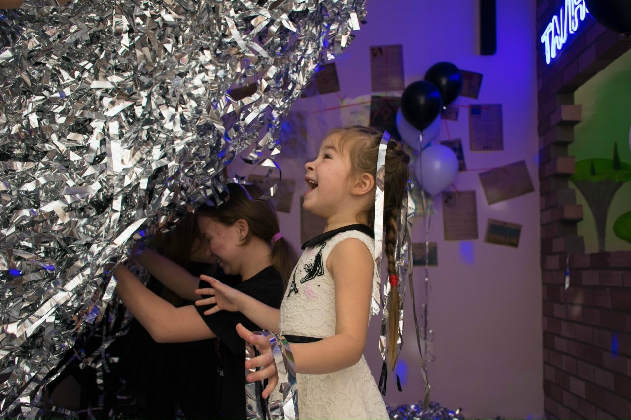 СЕРЕБРЯНОЕ ШОУ. Дискотека со светомузыкой и целой горой неоновых и серебристых лент.