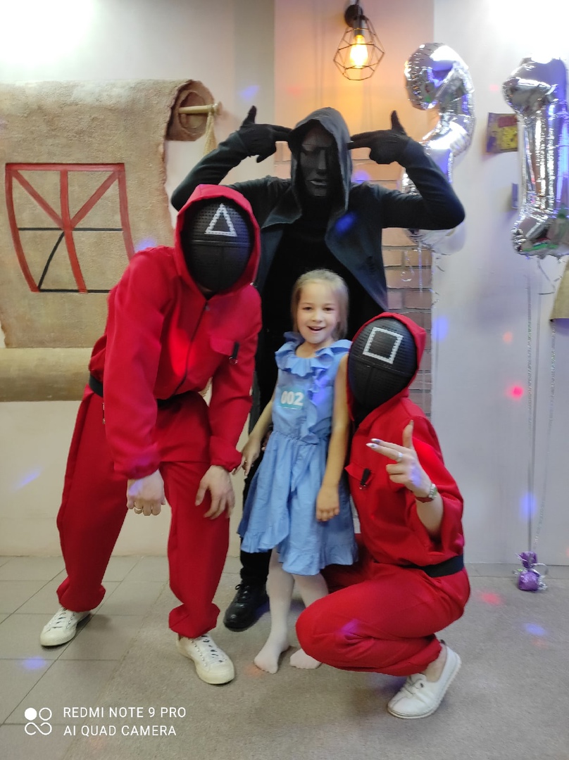 Описание квеста: Узнаете эти красные костюмы и маски с геометрическими символами на фото? Вы все поняли правильно, "Игра в кальмара" 🦑 начинается прямо здесь и сейчас. Участников игры ждут 60 минут тематических экшн-испытаний и полное погружение в ту самую атмосферу, в которой выигрыш решает все! ❗️ Все испытания полностью адаптированы под сериал: "Тише едешь - дальше будешь", "Стеклянный мост" и другие
